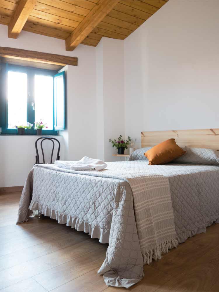 Habitación doble grande con cama de matrimonio. Acceso a todas las zonas comunes. Posibilidad de 1 mascota (+5€). Wi-fi solo en salón común. Desayuno incluido.